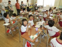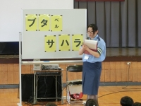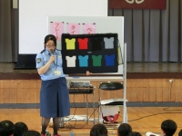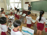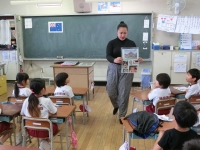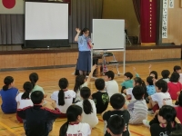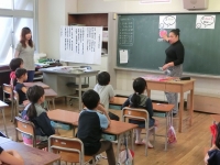 ALTのルシアニ先生と1,2年生が楽しく外国語に親しみました。1年生は初めての出会いにとても嬉しかったようです。