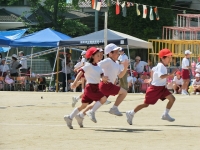 猛暑の週末、暑さに負けない子どもたちの元気な声が校庭に響き渡りました。今年で第19回となる合同大運動会が21日第四小学校で行われました。伝統の種目に加え、工夫されたチャンス走等、地域の方々と一体となり、大いに盛り上がり、事故などもなく終了することができました。今年度は、昨年の雪辱を果たし、見事白組の勝利となりました。