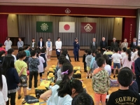 本年度第1回土曜授業終了後 全校生と保護者と地域の見守り隊の方と顔合わせの集いを行いました。その後、全職員、見守り隊の方と一緒に下校指導を行いました。