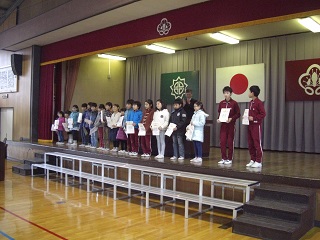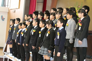 平成28年度 修了式を行いました。学年ごとに呼ばれると,どの学年も大きな声で「はい!」と返事をすることができました。また式に臨む態度もとても素晴らしく,今年度1年間の成長を強く感じました。代表児童の作文発表も,たいへん立派でした。