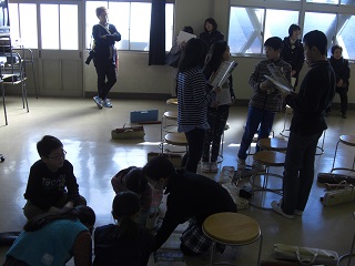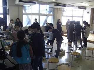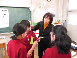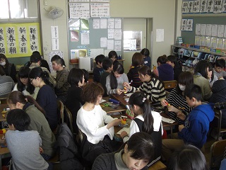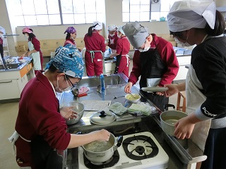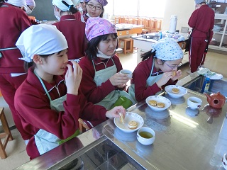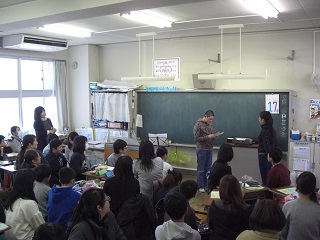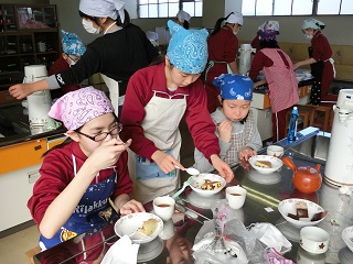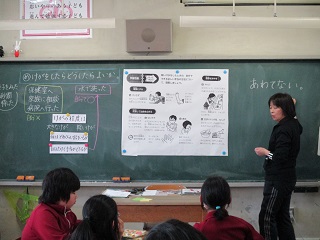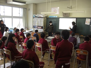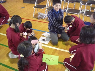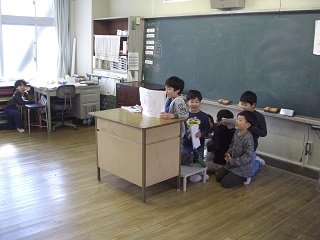 家庭科の学習です。家族団らんを計画し,友達を家族に見立てて「家族団らん(ごっこ)」をしました。校長先生もいらして,和やかな団らんとなりました。各家庭での団らんに生かしてほしいです。