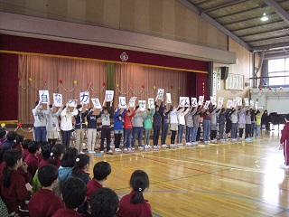 「これまでお世話になった6年生に,感謝の気持ちを伝え,笑顔があふれる会にしよう!」これが,会のめあてでした。1ヶ月以上も前から5年生が中心になって,企画,準備等を進めてきました。感謝の会は,たくさんの素敵な笑顔が見られ,大成功のうちに幕を閉じました。