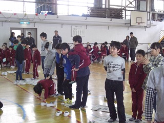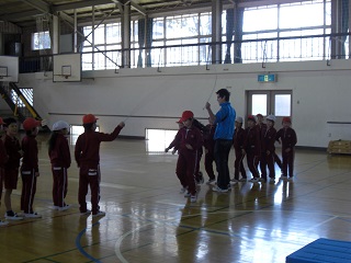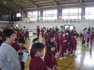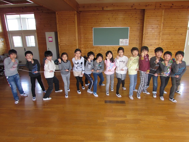 3年生は2月から長縄跳びにがんばって取り組んできました。初めの記録は2分で47回。この記録を約3倍の140回にするという目標を立てて,練習しました。授業参観では,70回。みんなあきらめきれず,もう一度声をかけ合いながら練習し,今日ついに142回跳ぶことができました。これからもみんなでがんばっていくぞ~!