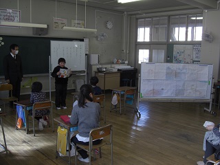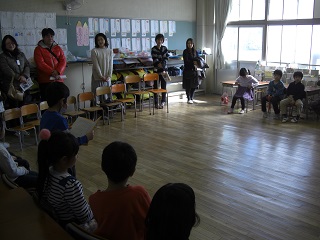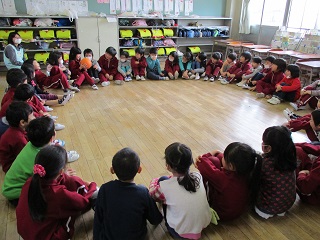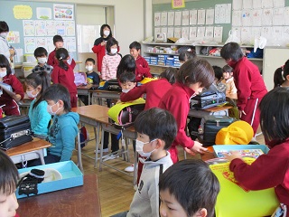 4月から小学生になる年長さんに,学校の様子を伝えたり,学校の中を案内したりして,入学に向けて小学校で一緒に活動しました。