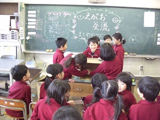 今年度も,聾学校・盲学校の友達と,たくさんの交流をしてきました。今日は,この一年間の交流をふり返る「まとめの集い」が開かれました。各学年で楽しい会にしようと,それぞれの学校で内容を考えました。どの学年でも,たくさんの笑顔が見られ,さらに親交が深まったようです。