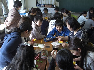 【6年親子活動】卒業式で胸につけるコサージュを作りました。