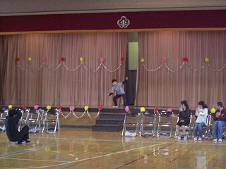 【学年ごとのゲーム。6年生と対決したり一緒に遊んだりして楽しく過ごしました。】