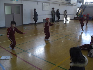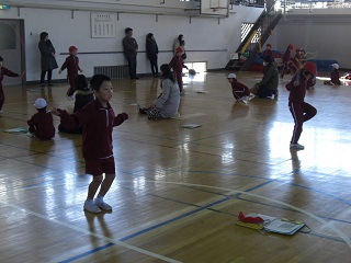 2017年2月15日 11時30分 ご家庭の方が見守る中,気合いを入れて目標に向かい,一生懸命に跳ぶことができました。中には,初めて目標を達成した子もいて,みんなの熱気が飛び交う,記憶に残る記録会となりました。