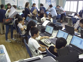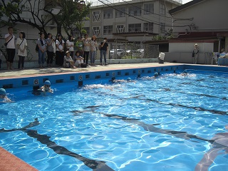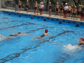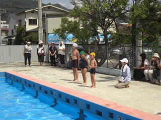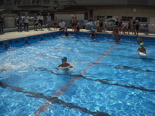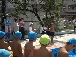 今日は,今年度の水泳学習の成果を発揮する「校内水泳記録会」を行いました。水温,気温とも記録会には,絶好のコンディションでした。プールサイドには,たくさんの保護者の方々が応援に駆けつけてきてくださいました。保護者の皆さんの声援や拍手が,子どもたちの力になったようです。どの子も本当によく頑張りました。保護者の皆さん,暑い中,本当にありがとうございました。
