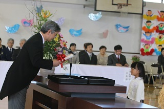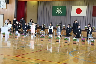 今年度の新入生は19名(男子9名 女子10名)。わくわくどきどきで,今日の日を迎えたことでしょう。式では,担任の先生から呼名されると元気よく大きな声で返事をすることができました。