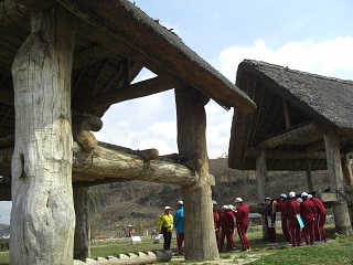 2016年4月13日 17時23分 6年生が「じょーもぴあ宮畑」へ行き,縄文時代の生活を見たり,聞いたり,体験したりしてきました。職員の方の説明を聞いて,一生懸命にメモを取り,しっかりと学習していました。