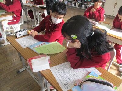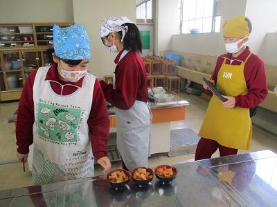 6年生の家庭科「献立を工夫して」では、給食の献立作りをしました。栄養バランスなどを意識しながら献立を考えることができました。1月の給食が楽しみですね。