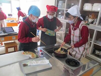 6年生家庭科では、じゃがいもと加工食品を使って一食分のおかず作りをしました。自分たちで調理方法から必要な材料の分量など調べて調理することができました。