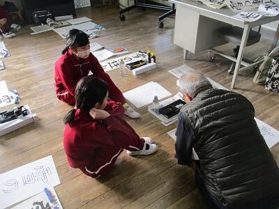 6年生の書きぞめのお題は「雪の連山」です。今回も丹治先生にご来校していただき、一画一画丁寧にご指導していただきました。