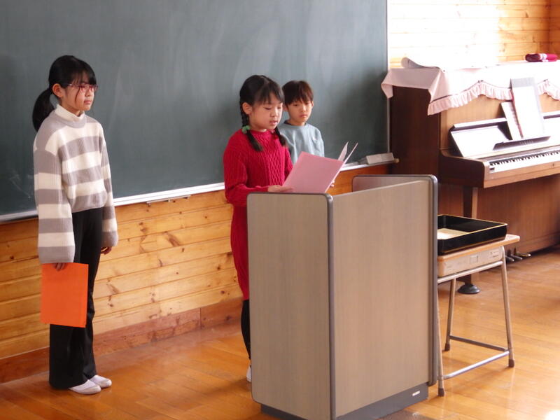 また、児童代表3名が「2学期の反省と冬休みのめあて」を行いました。3人とも、大きな声で堂々としたすばらしい発表でした。