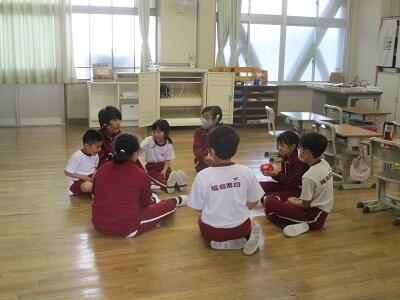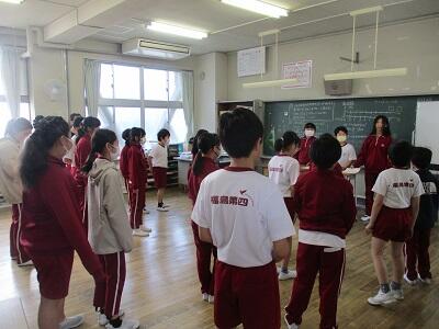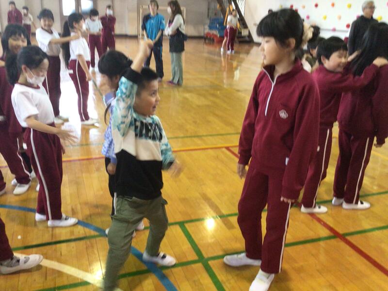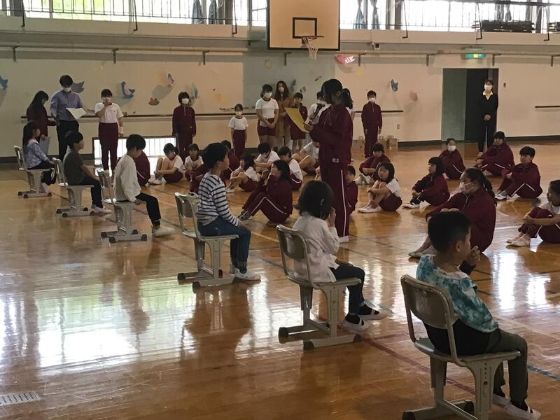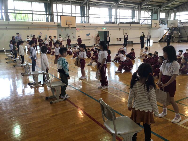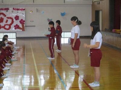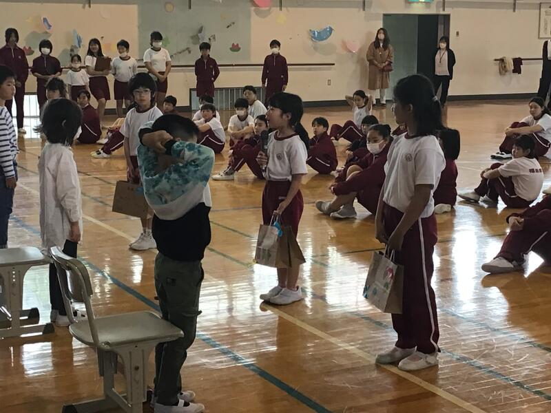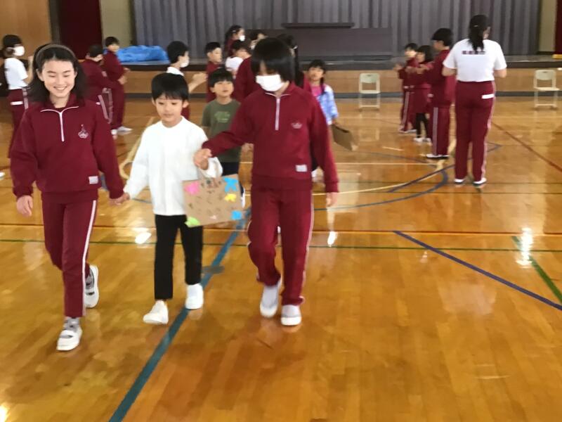 全校児童で1年背を迎える会を行いました。楽しいゲームをしたり、プレゼントをあげたりしました。これからよろしくね!!