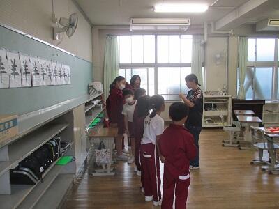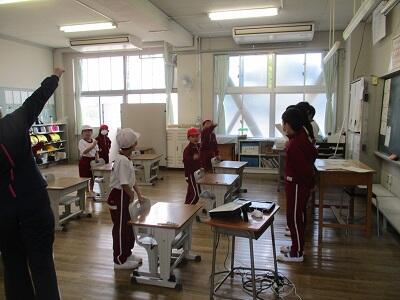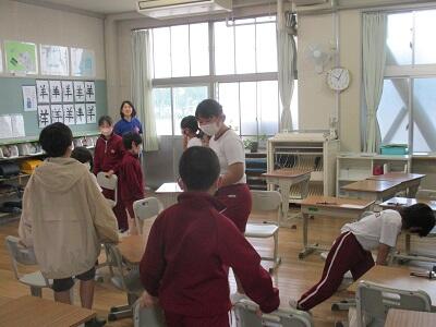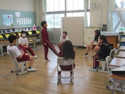 6年生と代表委員会の子どもたちが、運動会に向けて応援団のやり方を各学年に教えに行きました。