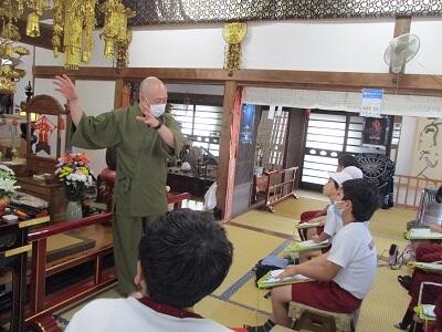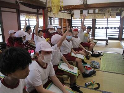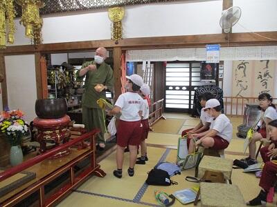 四年生は総合的な学習の時間に信夫山にある薬王寺へ行きました。ご住職の山河様に信夫山や福島市の歴史についてお話をお聞きすることができました。