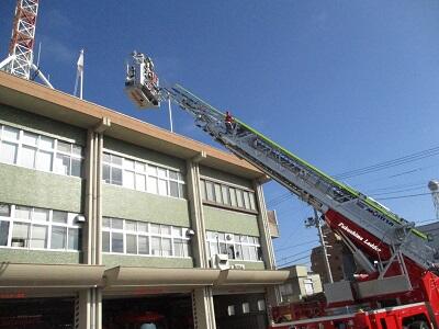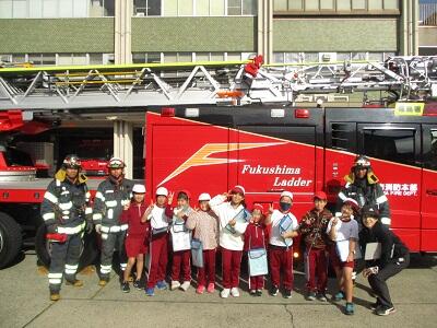 福島消防署ではしご車の訓練を見せていただきました。かっこいい消防士にあこがれる子どもたち続出!!