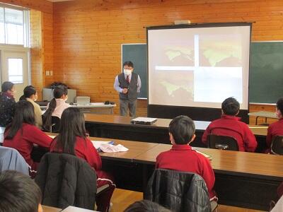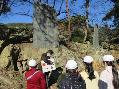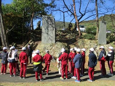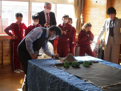 防災に関することや火山の仕組みについて、磐梯山噴火記念館から館長の佐藤公様に来ていただき、出前授業をしていただきました。また、駒山公園にある吾妻山噴火の慰霊碑にも行き、説明をしていただきました。