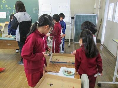 1年生と聴覚支援学校の子どもたちが「おもちゃまつり」を開きました。2年生を招待して楽しい時間を過ごしていました。