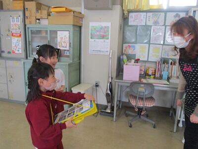 2023年4月19日 13時20分1年生と2年生で学校探検をしました。どこに何があるかを見てまわりました。校長先生や保健室の先生に質問をして、わかったことをみんなに伝えることもできました。