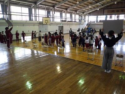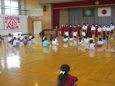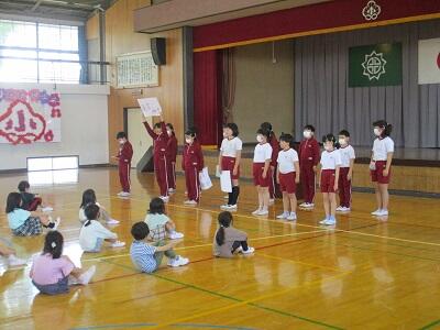 2023年5月2日 12時10分全校児童で1年生を迎える会を行いました。みんなで楽しく仲を深めることができました。代表委員会の子どもたちも準備から、とっても頑張っていました。