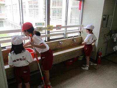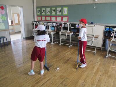 2023年4月21日 14時51分今日からスマイル班清掃が始まりました。1年生から6年生まで全員が協力して、学校をきれいにします。