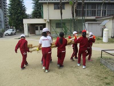 2023年4月24日 13時26分各学年、運動会練習が始まってきました。高学年は団体競技で大きなわらじを使います。お楽しみに!!