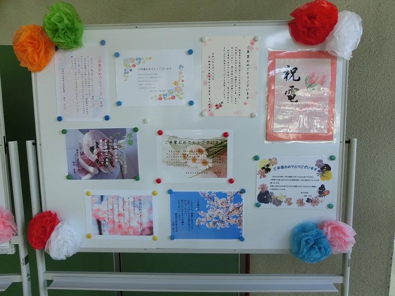 3月2日のお便りでお知らせしたとおりの内容、方法で実施します。式では、マスクの全員着 用、体育館入り口で全員手の消毒をします。本日から明日にかけて保護者の皆さまに担任より、定例の状況確認の電話を差し上げますが、その際、卒業式参加の有無について確認させていただきます。なお、参加する場合は、当日のマスク着用と朝の検温のご協力をお願いします。