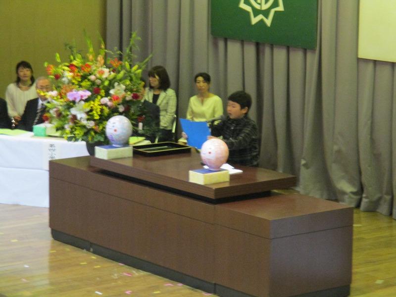 11月2日(土)本校体育館を会場に創立110周年記念式典が開催されました。来賓、地域の方々、保護者、児童約250名余りが参加して盛大に挙行することができました。実行委員長の川崎PTA会長の式辞に始まり、校長、市長、同窓会会長等の祝辞と続き、児童代表のよろこびの言葉の後に万歳三唱をして閉会しました。