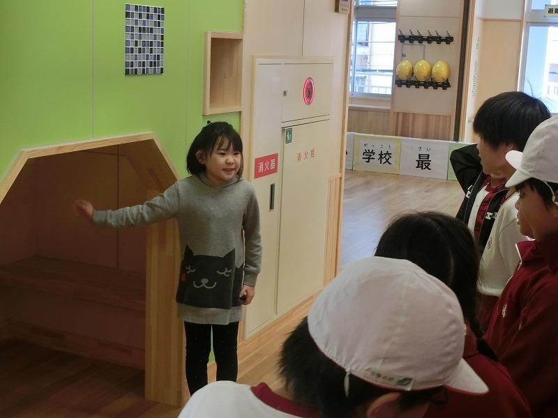 11月12日と13日の二日間で四小の児童は、今年の夏に完成した聴覚支援学校の新校舎を見学してきました。木の香りが漂う開放感のある素敵な校舎に児童たちは、感激していました。聴覚支援児童の案内で、スタンプラリー形式で校舎を探検し、壁にできたボルダリングにも挑戦していました。