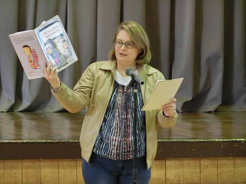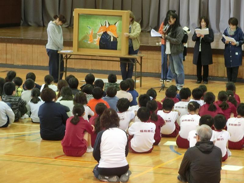 11月14日お昼に梅校タイムの時間を利用し、全校読み聞かせを行いました。絵本の贈呈式もあり、子供達に紹介されました。
