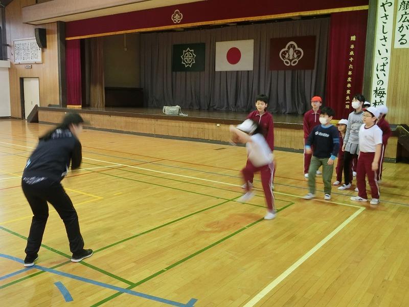 毎週火曜日の梅校タイムは、スマイル班活動をしています。今年度は体力向上を目標に様々な運動に取り組んできました。今日は、5年生以下のスマイル班で長縄跳びを行いました。