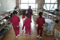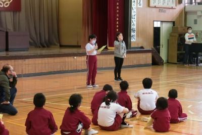 県視覚支援学校、県聴覚支援学校福島校の友達との「えがお交流はじまりの集い」を行いました。6年生の実行委員が企画したゲームは、校内に隠された文字を縦割りのスマイル班ごとに探し出して、文章を作るという謎解きゲームでした。「ことしも1ねんよろしくね」