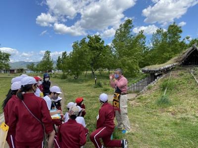 じょーもぴあ宮畑見学・6年生 2021年5月10日 18時20分 今日の出来事 6年生が社会科の授業として「じょーもぴあ宮畑」を見学しました。縄文時代の竪穴住居や縄文土器などを学び、縄文人のくらしに思いをめぐらせました。