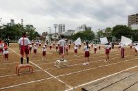 順延した運動会。朝は大変ぬかるんだ校庭でしたが、職員のほかにPTAの皆様、支援学校の先生方のご協力により整備され、1時間遅れで開会することができました。徒競走、チャンス走、団体、そして鼓笛演奏、リレーと、予定通り実施し、子供たちの元気に走り抜ける姿、堂々と演奏する姿がありました。ご協力ありがとうございました。