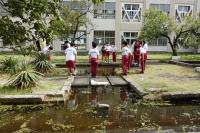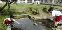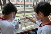 学校のメダカ 2021年5月26日 12時51分 今日の出来事 中庭の池には、メダカがたくさんいます。5年生は毎年、理科の学習のために池からメダカを取ってきて観察します。ただし、メダカもそう簡単には取らせてくれません。悪戦苦闘していたようです。