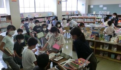 2021年6月24日 15時44分今日は24日、「ふくしま読書の日」、ふくよみの日です。この日は、図書の貸し出しを2冊までOKとしているので、昼休みの図書委員は忙しそうでした。また、その後の委員会活動では、本をたくさん読んでもらうように学級文庫の回収・選書を行い、再配当しました。