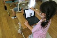 2021年6月30日 17時04分昨年度の6年生に続いて、1~5年生の机・いすが新しくなりました。昨日搬入され、5・6年生に手伝ってもらって各学級に運び入れ、本日から早速使用しました。これまでの机より縦・横それぞれ約5㎝大きくなり、机・ノートのほかにタブレットも置きやすくなりました。