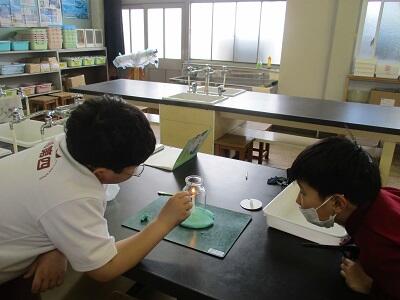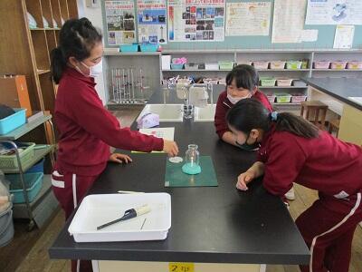6年生の理科の時間で、ものの燃え方と空気の動きについて実験しました。線香の煙の動きで空気の流れを確認しています。