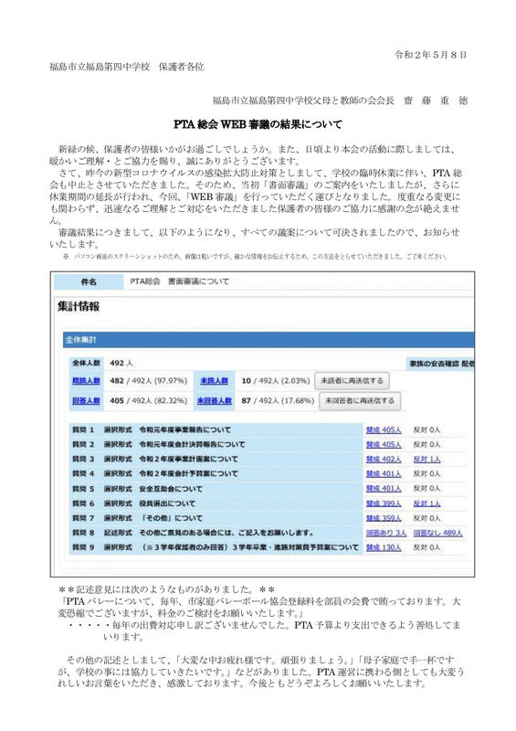 2020年5月12日 14時16分5月13日(水)の登校日の時間・日程等について、確認のため、お知らせいたします。