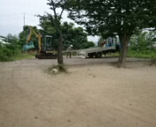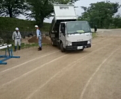 校舎の北側と東側の斜面が対象です。草刈りと表層土壌の撤去が中心ですから、