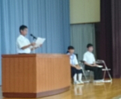全校集会では学年の代表生徒が一学期の反省を発表しました。皆さんとても立派でした。