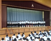 73日間の一学期も無事終了。体育館で終業式と全校集会が開かれました。