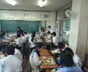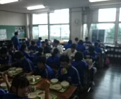 学校を訪問して、生徒の皆さんの配膳の様子や食事の様子などを見ていかれました。