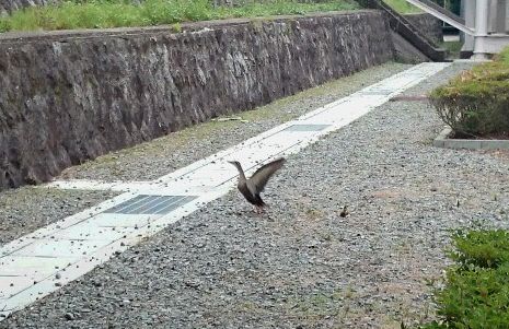 2016年6月15日 07時10分先週末、校庭を横切ってプールにやってきたカルガモの親子。