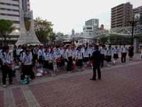 福島駅西口での帰校式の様子です。修学旅行での体験から学んだことを