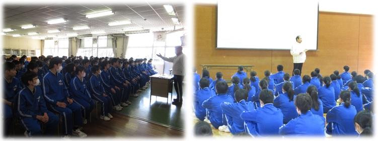 3月3日(火)の5校時に1・2年生は、今年度最後の学年集会を開催しました。それぞれの学年主任から、今年一年の成長の様子が話されました。臨時休業中の生活について、安心・安全な生活を心がけてほしいと思います。