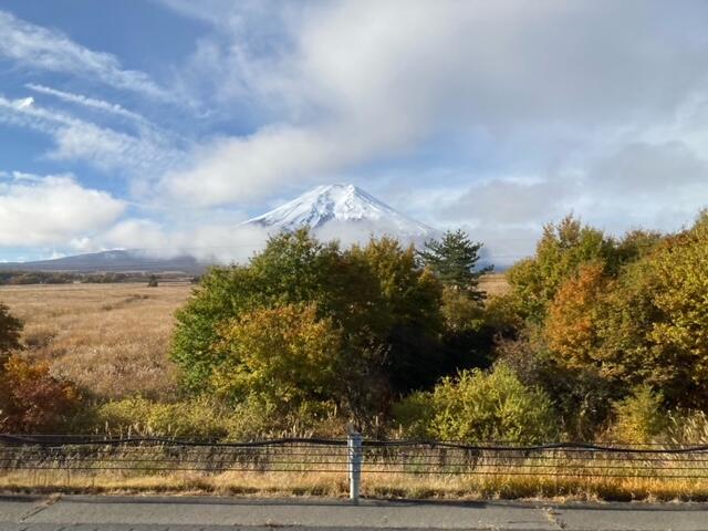天気予報がいい方に変わって今日は気持ちのいい朝です。ホテルを出発しました。富士山が綺麗です。